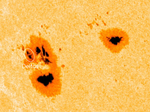 All the other sunspot regions on the disk are unremarkable and unlikely to produce strong solar flares. Any future solar flares will very likely be centered around sunspot region 2209.