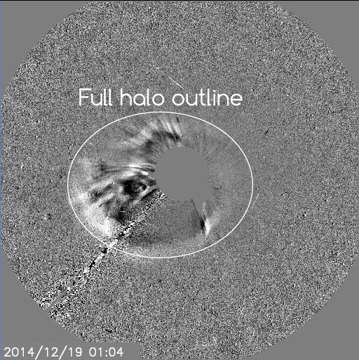 M8 coronal mass ejection from past Wednesday was not.The coronal mass ejection has a modest speed and is likely to arrive during the afternoon of 21 December. A minor G1 geomagnetic storm could occur on 21 December or early on 22 December if the direction of the IMF manages to turn southward. Stronger condtitions are unlikely considering the faint halo outline and modest coronal mass ejection speed. Sky watchers in southern New Zealand, Tasmania, Scandinavia, the northern parts of England and the nothern United States should be alert for possible auroral displays in the days ahead if we manage to reach G1 geomagnetic storm conditions around local midnight.