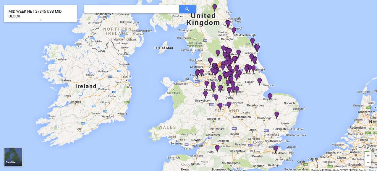 Kudos to Tony 26UK31 for the map showing all the locations for the stations checking in to the UK mid week net.
