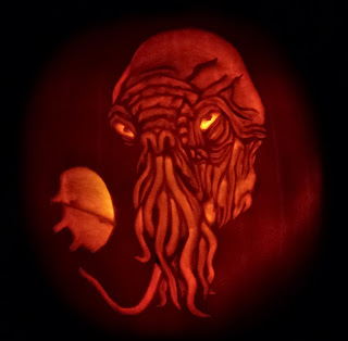 This is my daughter's hobby. It wouldn't be Hallowe'en without a little gratuitous pumpkin flaying - removing the skin, and leaving the flesh.
