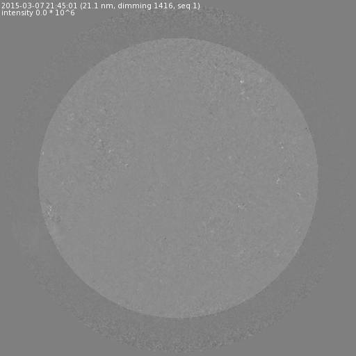 Image: Difference imagery from NASA SDO showing coronal dimming, a sign that a coronal mass ejection was launched.